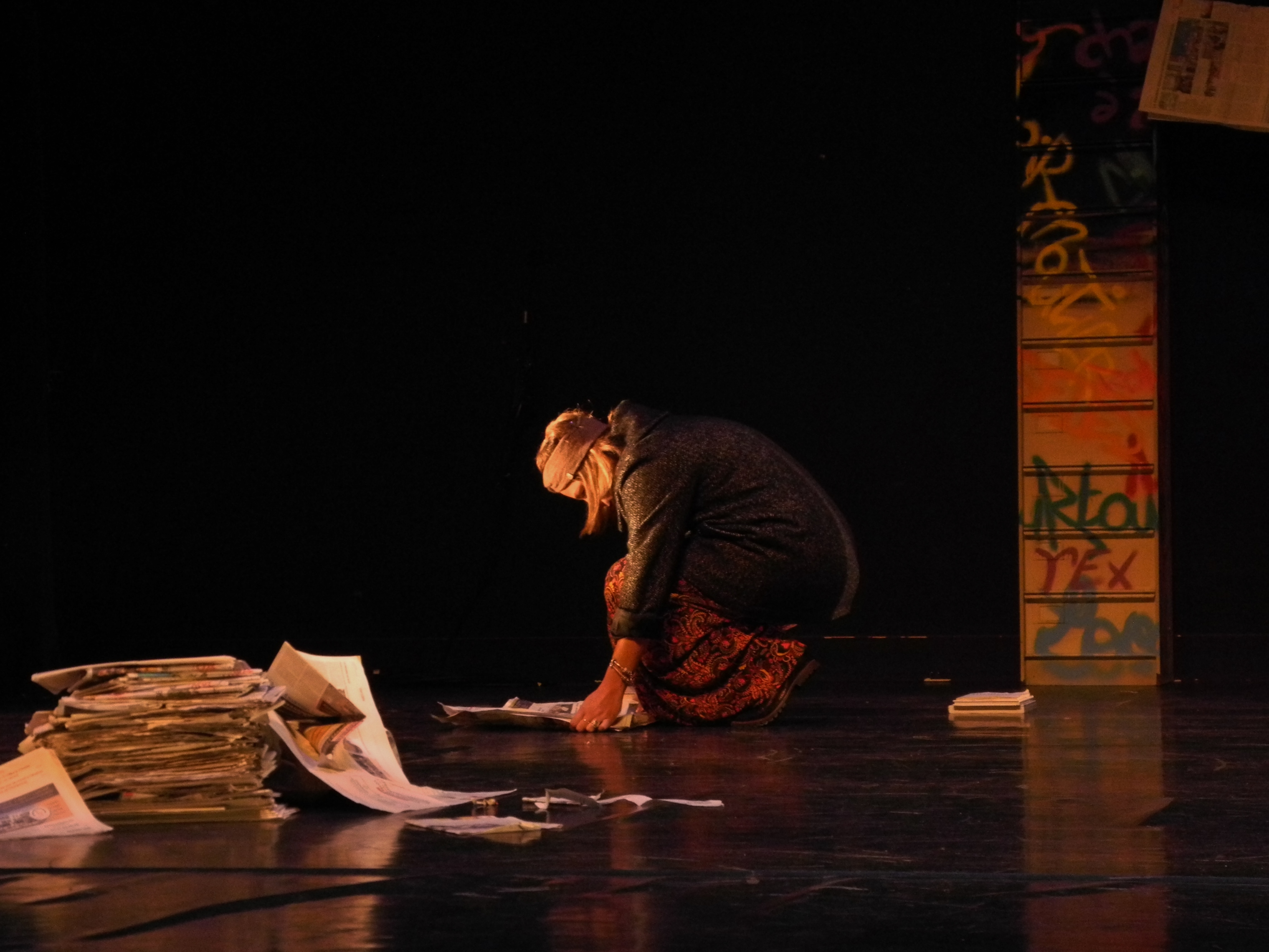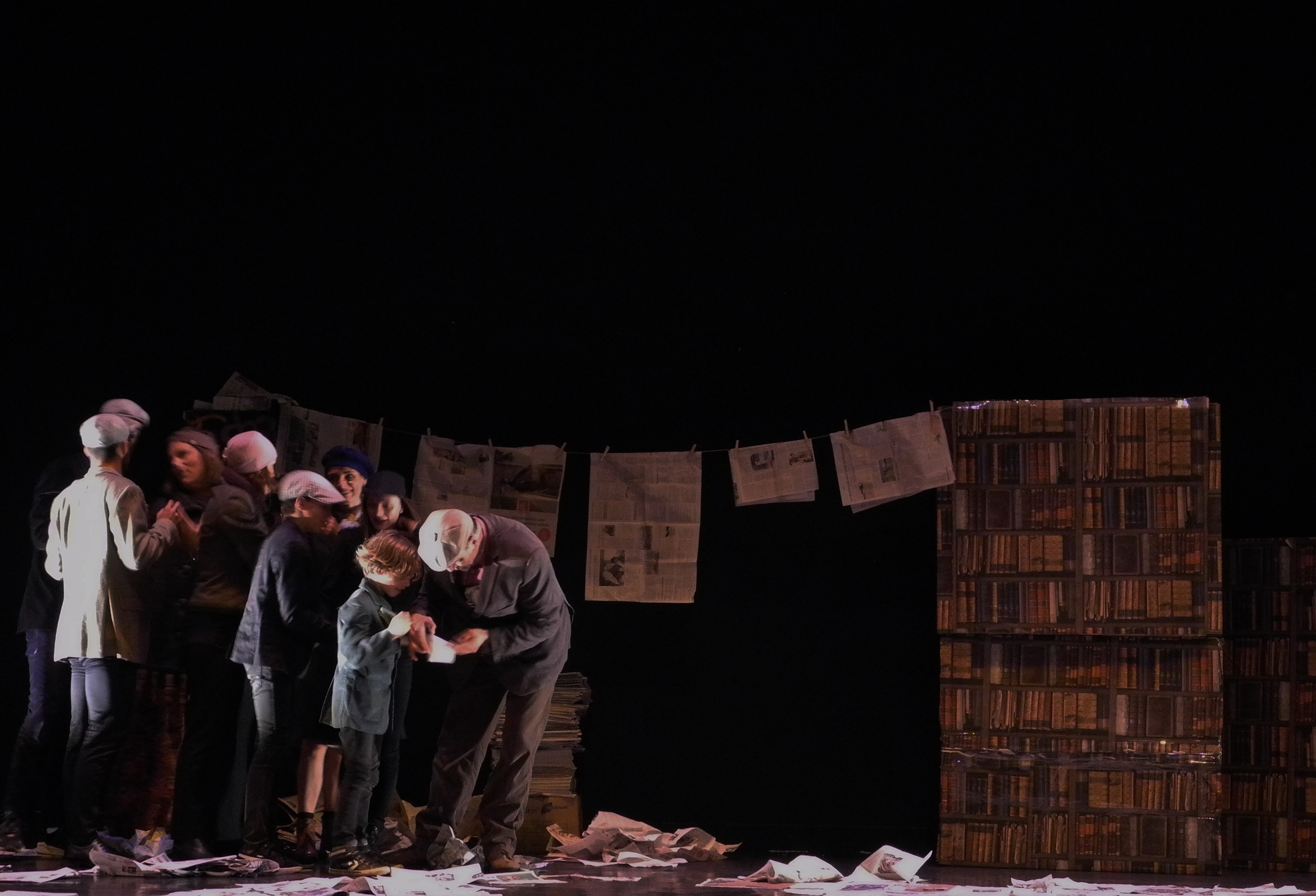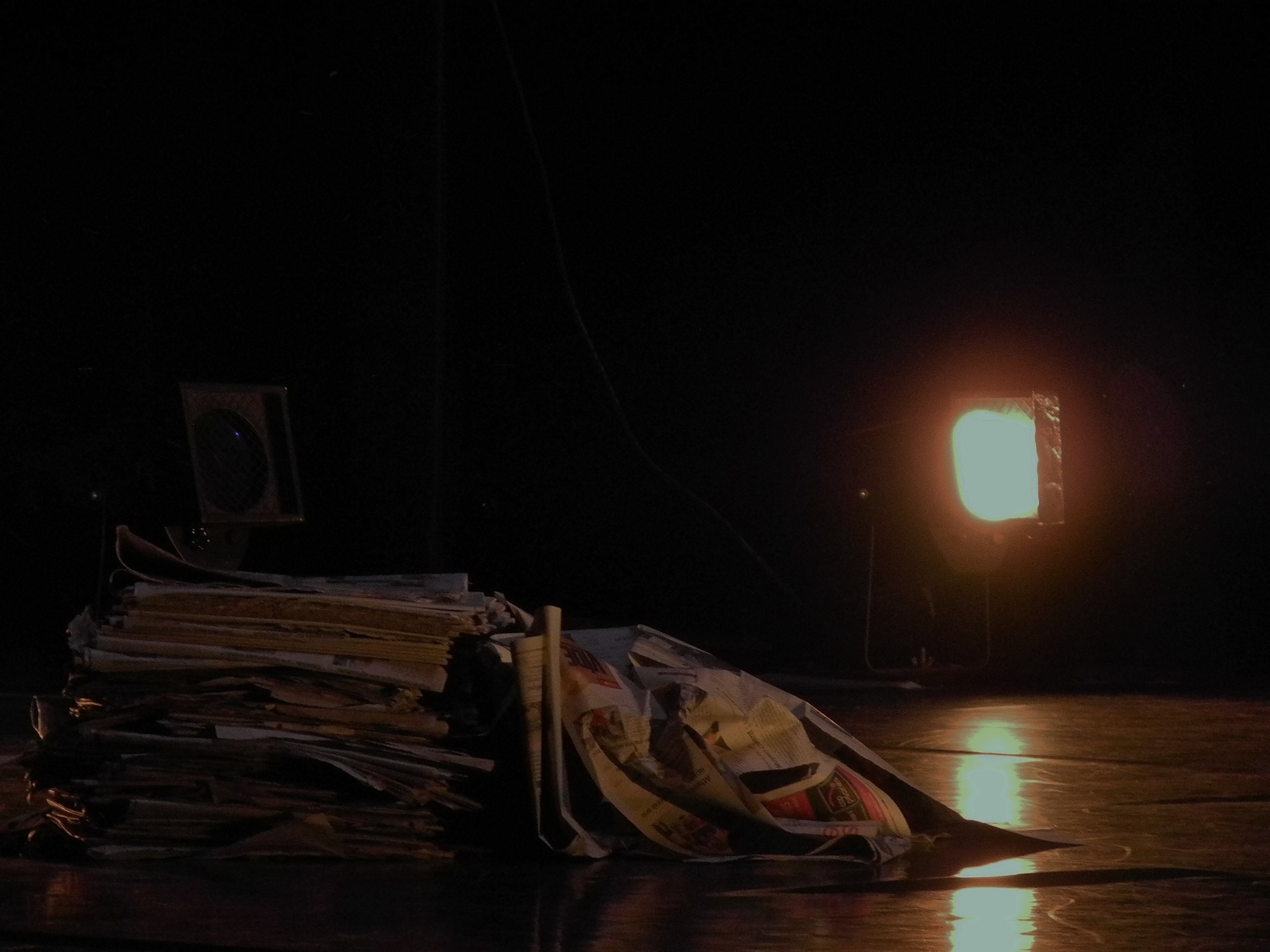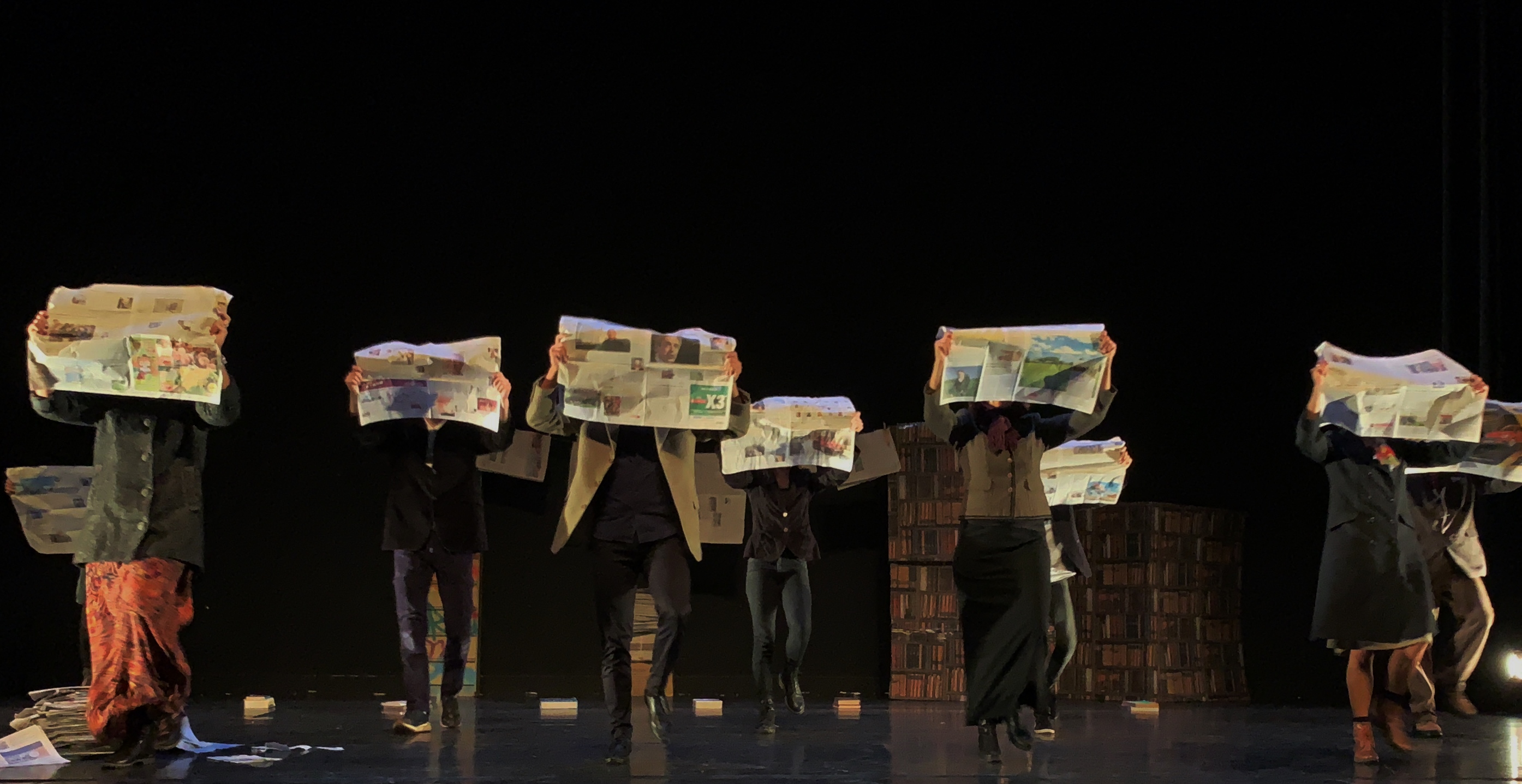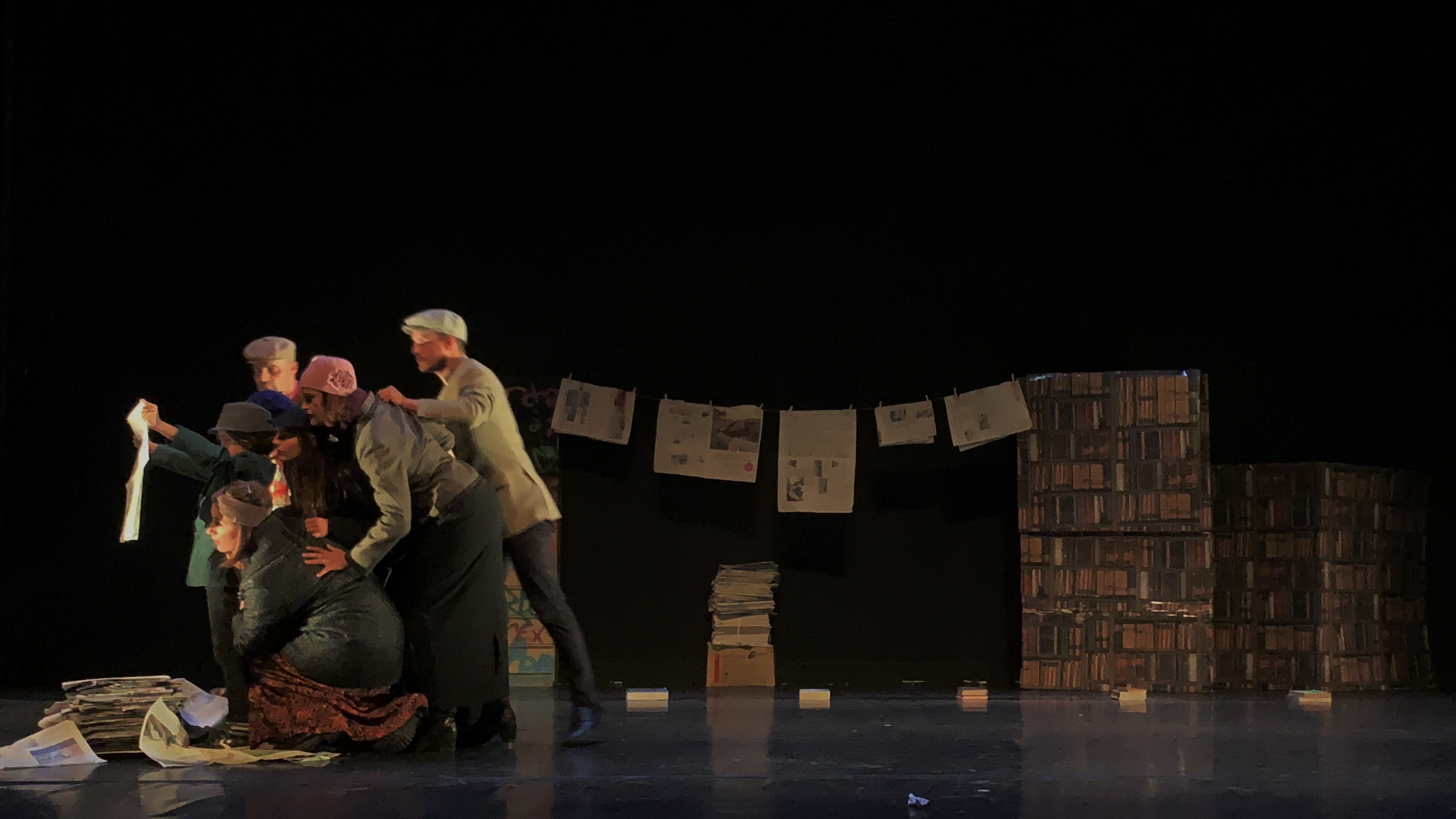 “C’est l’histoire d’un papier journal. Non , pas un papier journal mais plusieurs papiers journaux. Si on les regarde, on se dit : ce sont des journaux. Si on les regarde d’avantage, c’est là que tout commence pour cette pièce, pour nous, car les journaux dans notre famille en disent long… “